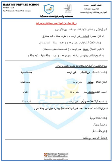 أوراق عمل درس أحوال خبر جملة كان وأخواتها الصف الخامس الفصل الثاني العلوم والتكنولوجيا